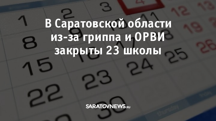 В Саратовской области из-за заболеваемости ОРВИ и гриппом полностью закрыты 23 школы. Это образовательные учреждения Саратова, а также Вольского, Калининского, Екатериновского, Ивантеевского, Краснопартизанского, Озинского, Ровенского, Романовского, Ртищевского, Федоровского, Энгельсского районов.