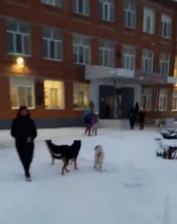 По закону нахождение и выгул собак на школьной территории запрещен, однако это не помешало местным жителям прикормить собак возле детской площадки и даже установить им будку.