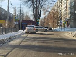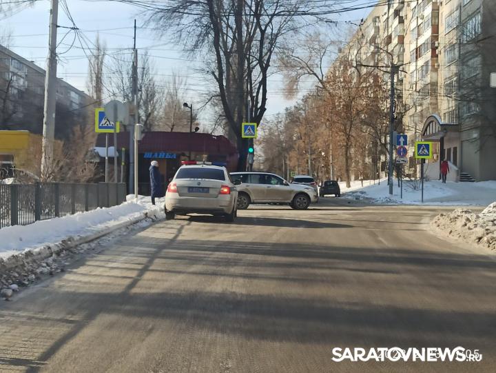 Сегодня, 23 февраля, в центре Саратова произошло ДТП. На пересечении улиц Рахова и Шелковичной столкнулись два китайских кроссовера. О происшествии рассказали очевидцы.