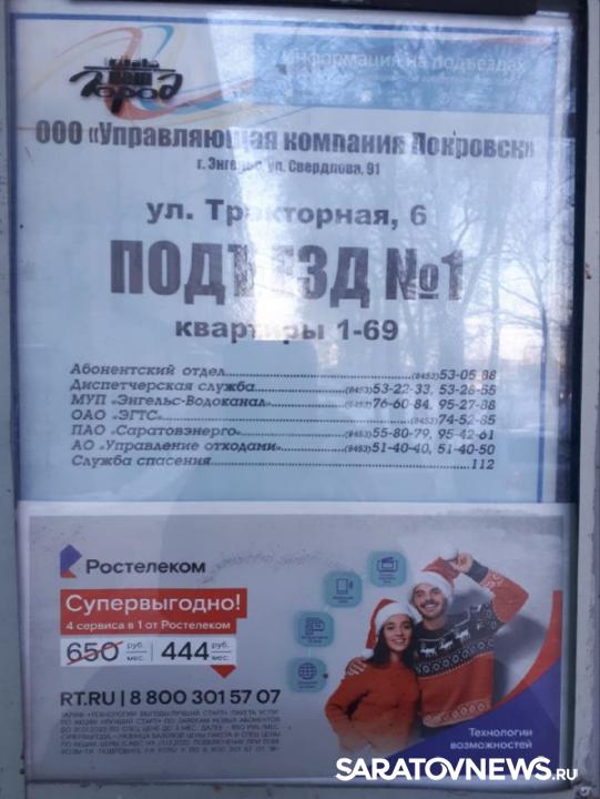 Жители девятиэтажного дома №6 по улице Тракторной в Энгельсе страдают от канализационного запаха, постоянно присутствующего в подъезде.