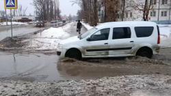 - Венецианские пейзажи. Через пешеходный переход на улице Волжская, между 3-й школой и 22-м садом, с детьми можно только плыть (воды выше щиколотки). При том к нему и подойти невозможно - тоже море. Так каждый год. Уважаемая администрация, может хоть кто-то приедет, воду откачает? Жители будут признательны, - пишет местная жительница, Анастасия в соцсети "Вконтакте".