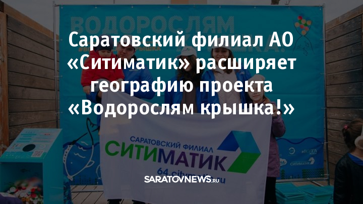 Экологический проект «Водорослям крышка!» реализуется АНО «Центр экологических решений и защиты окружающей среды «ЭКОЛОГИЗАТОР» совместно с Фондом поддержки реки Волга «ВОЛГАЖИВИ» и Ассоциацией производителей и импортеров «ЭКОПРО». Саратовский филиал АО «Ситиматик» - главный партнер акции с первого дня ее существования. В 2022 и 2023 году проект признан победителем конкурсов Фонда президентских грантов.