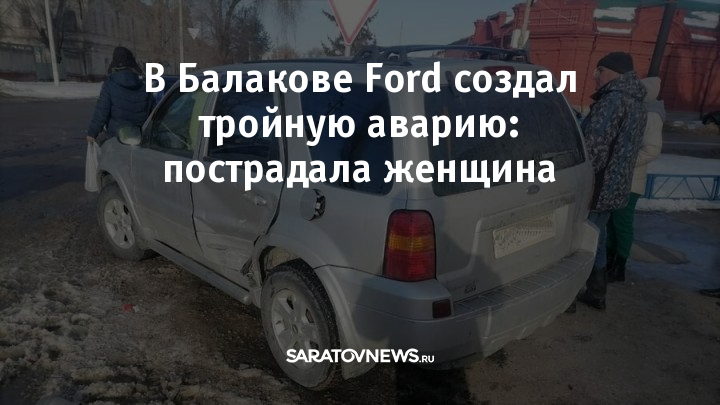 Сегодня утром, 6 марта, в Балакове Саратовской области произошло тройное ДТП. У дома № 57 на ул. Советской автомобиль Ford двигался по второстепенной дороге, не уступил дорогу Daewoo Matiz, столкнулся с ним, а затем врезался в стоящий Hyundai Solaris.