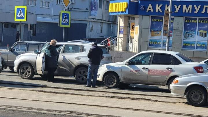 Сегодня, 7 марта, около 12 часов дня в Саратове на улице Танкистов произошло ДТП с участием трех автомобилей. В аварии участвовали автомобили Nissan Qashqai, такси "Лада Гранта" и Cherry Tiggo. В связи с происшествием, движение по улице Танкистов замедлено. На месте работают сотрудники Госавтоинспекции. Пострадавших нет.