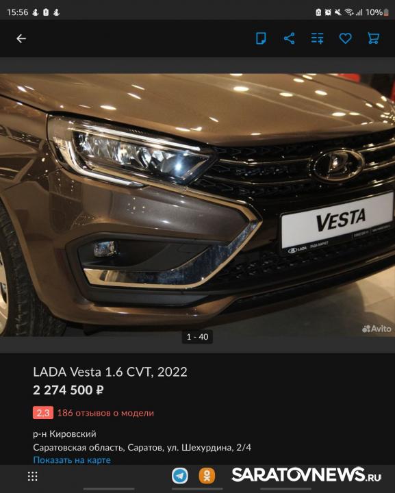 Стоимость отечественных автомобилей в саратовских автосалонах превысила 2 миллиона рублей. Об этом свидетельсвуют данные с популярной торговой площадки в интернете.