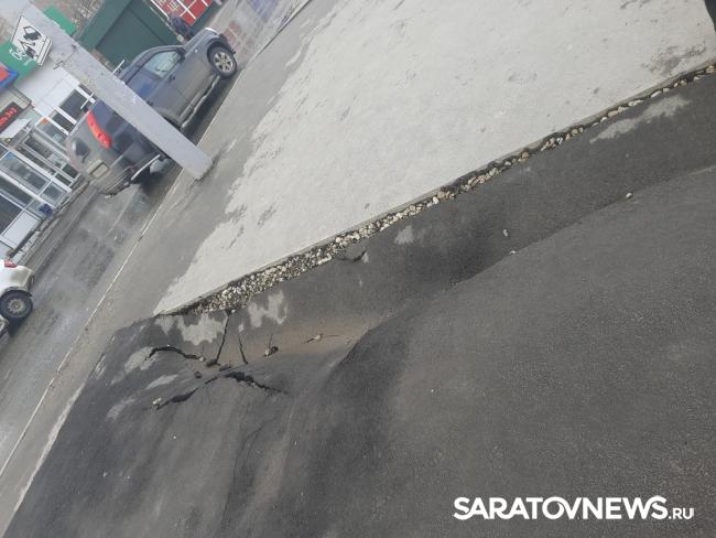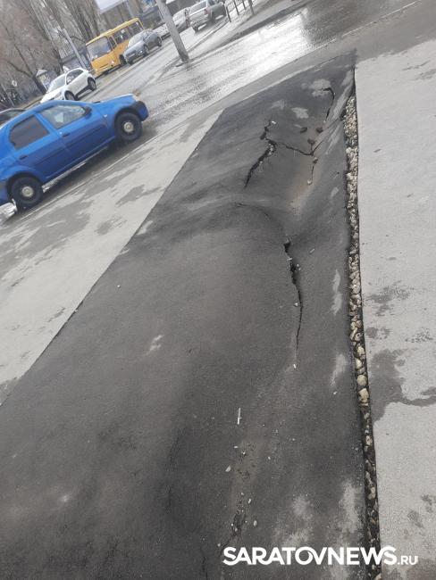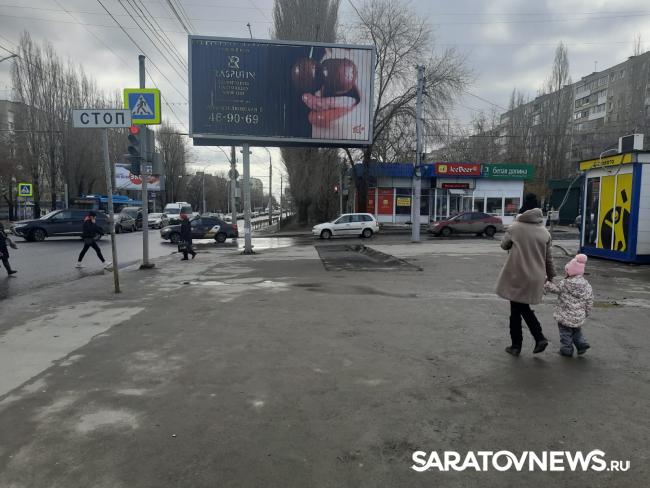 В Саратове в районе 1-й Дачной у пешеходного перехода образовался провал на тротуаре.