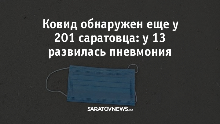 За прошедшие сутки еще 201 житель Саратовской области заболел коронавирусом. С признаками ОРВИ 186 пациентов, пневмония развилась у 13 заболевших, отметили в оперштабе региона.