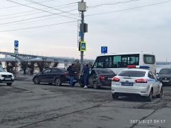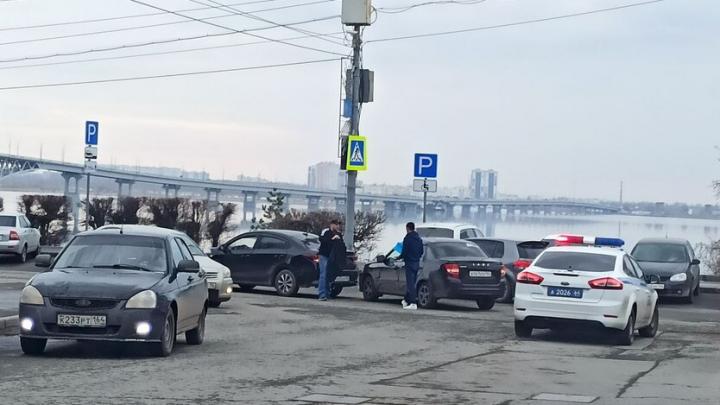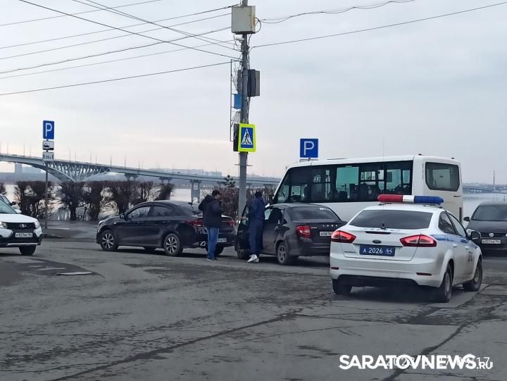 Утром в Волжском районе Саратова произошло ДТП. На пересечении Набережной Космонавтов и улицы Московской (у речного вокзала) "Лада" врезалась в Kia на повороте. Об аварии сообщили очевидцы.