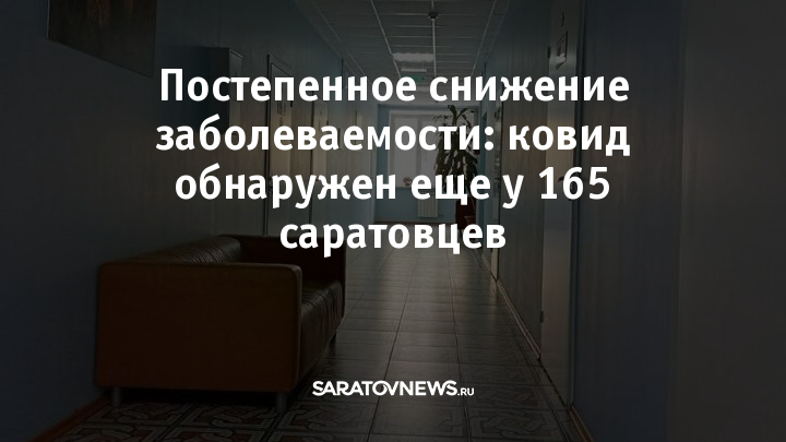 В Саратовской области идет постепенное снижение заболеваемости ковидом. Так, за минувшие сутки еще у 165 жителей подтвердился COVID-19. Это на три случаев меньше, чем за вчерашний день. С признаками ОРВИ 145 пациентов, у 19 обнаружена пневмония. О ситуации сообщил региональный оперативный штаб.