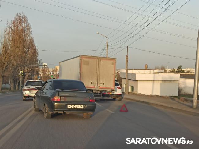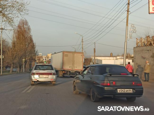 В Заводском районе Саратова произошло ДТП, которое вызвало серьезную пробку и значительно усложнило въезд транспорта в город. На Ново-Астраханском шоссе столкнулись грузовик и автомобиль Hyundai.