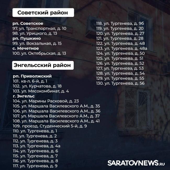 "За счет указанных средств новое жилье до конца 2024 года предоставят 5400 гражданам (174 дома) из 9 муниципалитетов: Саратов, Балаковский, Балашовский, Вольский, Ершовский, Красноармейский, Пугачевский, Советский и Энгельсский районы. Это плюс к уже действующей программе, в рамках которой до конца текущего года охватим еще 200 домов. В результате объемы переселения увеличатся практически в 2 раза.", - говорится в посте губернатора.