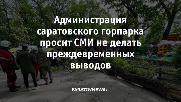 Администрация саратовского городского парка культуры и отдыха попросила СМИ и представителей власти воздержаться от преждевременных выводов о причинах трагедии. Об этом сообщается в телеграм-канале учреждения. Напомним, накануне в горпарке упавшее дерево убило пенсионерку и девочку, еще трое пострадали.