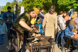 Еще одной интерактивной площадкой для юных балаковцев стала кузница мастера Михаила из Москвы. Он показал зрителям, как «приручить» металл. Мастер-класс по кузнечному делу привлек в основном мальчишек, которые, вооружившись молотками, с удовольствием стучали по наковальне, придавая металлу нужную форму.