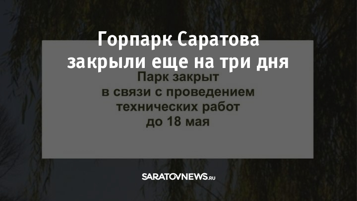 В Саратове второй раз продлили сроки проведения технических работ в городском парке. Теперь парк закрыт до 18 мая.
