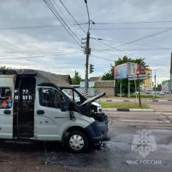 Огонь проник в салон микроавтобуса, также выгорел моторный отсек, повреждена крыша маршрутки.