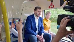 Утром на остановке трамвая № 9 «1-й Просяной проезд» в Заводском районе Саратова стартовал рейд по проверке готовности работы дублирующих маршрутов на время реконструкции трамвайной сети. В рейде приняли участие министр транспорта и дорожного хозяйства области Алексей Петаев, глава администрации Саратова Лада Мокроусова, и.о. председателя комитета дорожного хозяйства благоустройства и транспорта Игорь Поздникин.