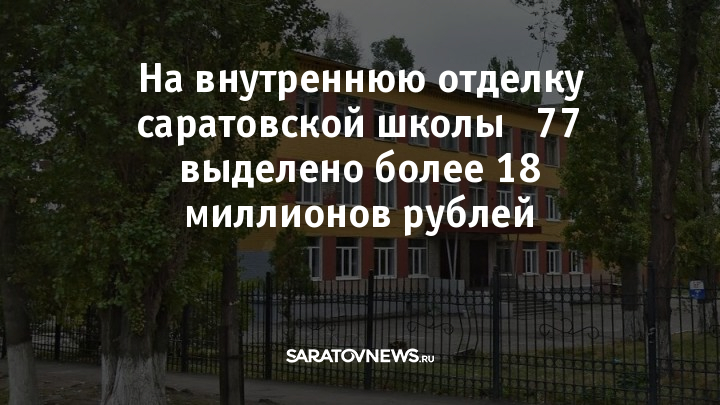 Саратовскую школу № 77 готовят к новому учебному году. Администрация Фрунзенского района объявила электронный аукцион на выполнение работ по капитальному ремонту здания школы. Строение находится на ул. Шелковичная, 141. На работы выделено 18,6 миллиона рублей. Предстоят внутренние отделочные работы.