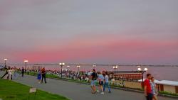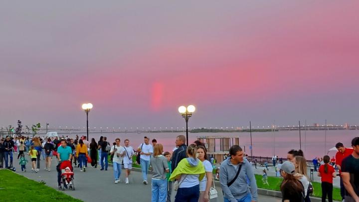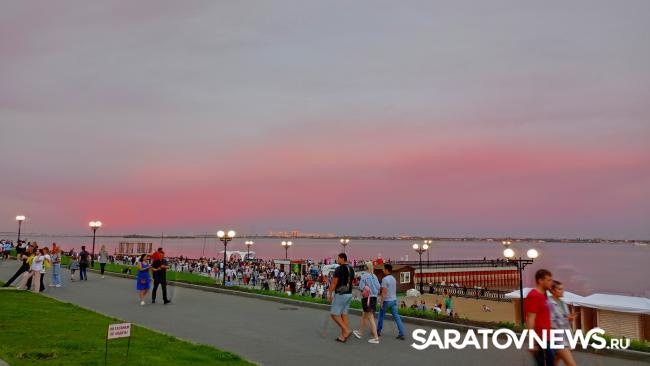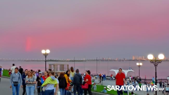 Вечером 1 июня саратовцы увидели на вечернем небе над Волгой необычные вертикальные розовые лучи. Они быстро трансформировались, набирали цвет, а потом рассеивались. Они не были похожи на солнечные. Скорее, они походили на основания радуги, которые на глазах превращались в ярко-розовые столбы. Небо при этом также имело розовый оттенок - яркий, совсем не такой, как на закате.