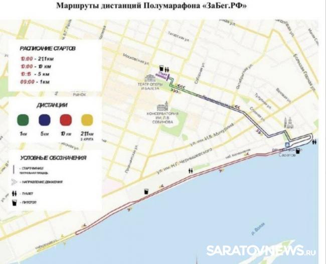 В центре Саратова временно ограничат движение транспорта в связи с проведением полумарафона ЗаБег.РФ