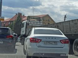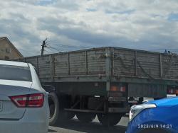 Примерно час назад на въезде в Саратов произошло ДТП. На Вольском тракте столкнулись автомобили "КамАЗ" и Mazda. Машины заняли правый и средний ряд, оставив для проезда только левую часть дороги.