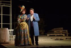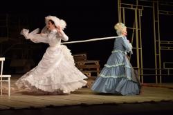 Похвально, что мюзикл основан на классическом прочтении сюжета. Труппа театра в очередной раз заставила присутствующих в зале на три часа забыть о времени , сделала публику соучастником того. что происходило в Бряхимове, стать гостями на «обеде» несчастного Карандышева( Михаил Крещиков), закружится в вихре цыганских плясок ( балетной части труппы особые апплодисменты!) , посочувствовать невероятным ухищрениям сохранить остатки благопристойности мамаши Огудаловой ( Елена Комиссарова), поддаться чарам невероятно харизматичного Паратова (Роман Каляев). Когда понимаешь, что подлец-человек, но ведь чертовски хорош! Всей душой переживаешь за Ларису ( Екатерина Умришова) милую , светлую с ,такой объяснимой для юной девушки, страстной мечтой о любви…Не перестаешь удивляться дикой смеси цинизма и благородства купцов Кнурова( Александр Фатеев) и Васи Вожеватого( Тимур Абдурахманов) разыгрывающих живого человека в орлянку….