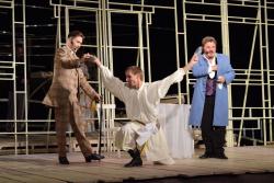 «Пусть другой гениально играет на флейте, Но еще гениальнее слушали вы». Меткое замечание Андрея Дементьева всецело можно отнести к саратовско- энгельсской публике. Крики «браво» раздавались еще до начала спектакля. Волновались все: публика, творческая группа, директор театра Виталий Емельянов пристраивал сотрудников на единичные свободные места. Следует признать, у волнения были резоны. Не на каждую премьеру собираются первые лица региона. Министр культуры, представители правительства , депутаты городской и областной думы…