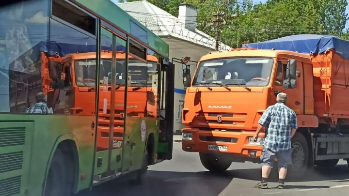 В Кировском районе Саратова примерно час назад произошло ДТП с общественным транспортом. Автобус и зерновоз не поделили дорогу на улице Аэропорт.