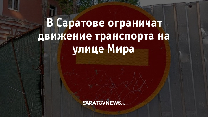 В понедельник, 26 июня, в Саратове запланировано временное ограничение движения транспорта на улице Мира. Ограничение будет введено с 11.00 до 17.00 от дома № 27 до дома № 17 по ул. Мира.