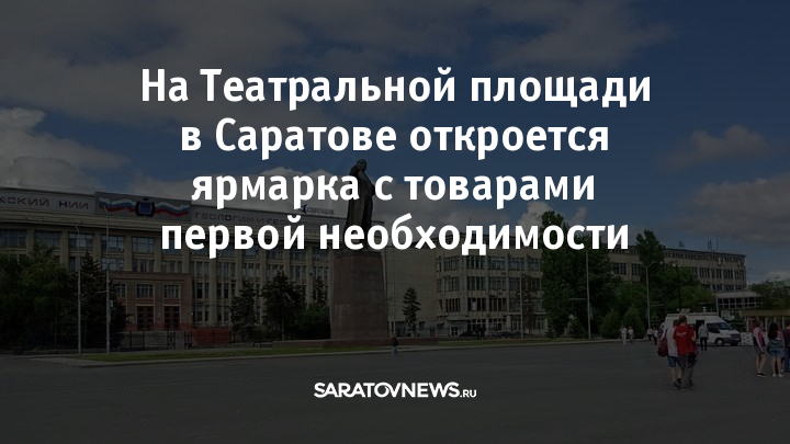 В Саратове в воскресенье, 2 июля, на Театральной площади откроется ярмарка, где будут продавать продукты питания и товары первой необходимости.