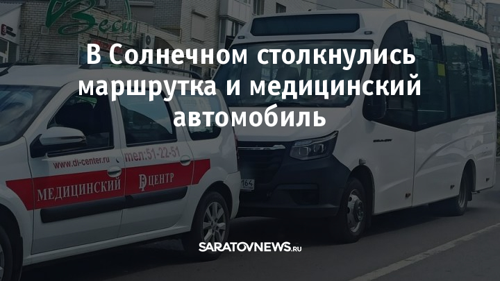 Примерно час назад в Солнечном микрорайоне Саратова произошло ДТП. На улице столкнулись маршрутное такси №74 и медицинский автомобиль "Лада Ларгус".