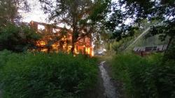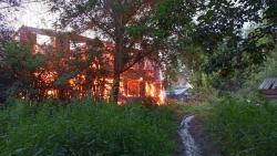 По словам очевидцев, дома горят порядка двух часов. Одно строение было потушено, но потом огонь разгорелся снова.