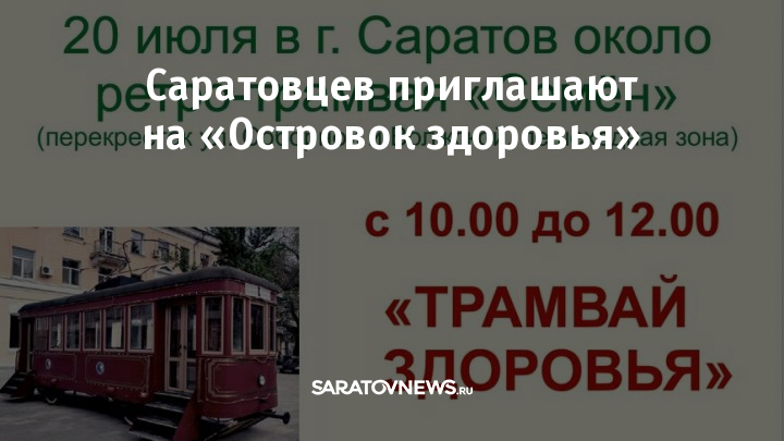 «Мероприятие организуется в рамках проекта «Трамвай здоровья» по инициативе государственного учреждения здравоохранения «Саратовский областной центр общественного здоровья и медицинской профилактики» при поддержке регионального министерства здравоохранения и администрации города Саратова. Приглашаем всех желающих посетить медицинскую площадку и проверить свое здоровье!», - сообщает в своем телеграм-канале министр здравоохранения Саратовской области Олег Костин.
