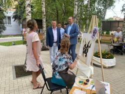 Московских гостей заинтересовал интерьер корпуса, где на входе и лестничном марше размещены репродукции картин Петра I и Екатерины II. Напомним, император впервые создал богадельни для нуждающихся, а императрица продолжила его начинания. Делегация пообщалась с художницами – Алиной Масловой и Мариной Кочетковой, которые создают картины, расположившись в уютной березовой роще.