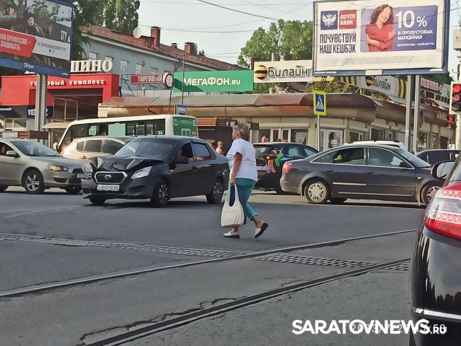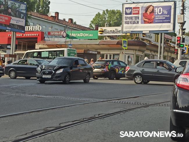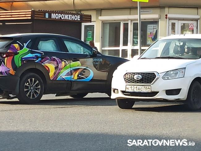 У микрорайона СХИ в Саратове образовалась пробка. На пересечении улиц Навашина и Танкистов столкнулись автомобили Mazda и Datsun. У машины Mazda сработали подушки безопасности.