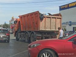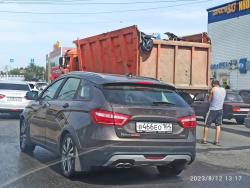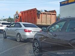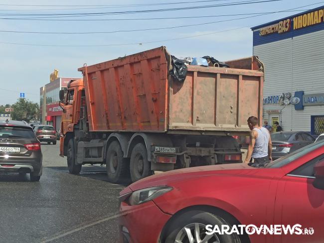 Несколько минут назад в Саратове на Вольском тракте произошло ДТП с участием "КамАЗа" и "Лады". В результате этого образовалась пробка на выезде из Саратова.