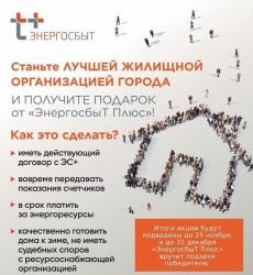 Итоги акции «Лучшая управляющая организация» будут подведены до 25 ноября, а до 31 декабря «ЭнергосбыТ Плюс» вручит подарок победителям – снегоуборочную технику, которая поможет содержать в порядке дворовую территорию в зимний период.