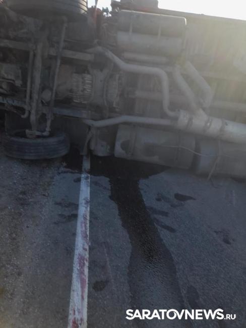 Перевернувшаяся фура полностью перекрыла движение на трассе, сообщил начальник управления обеспечения безопасности жизнедеятельности населения правительства Саратовской области Юрий Юрин.