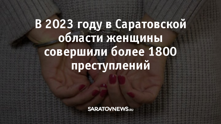 За 7 месяцев 2023 года в Саратовской области зарегистрировано 17 тысяч 889 преступлений, из которых 1844 совершили женщины.