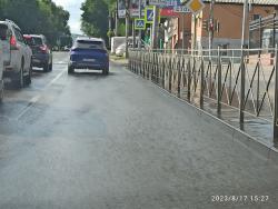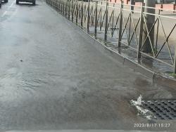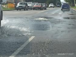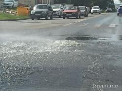 По сообщению местных жителей поток воды разливается на обе улицы, затрудняя не только передвижение пешеходов, но и усложняя движение транспорта.