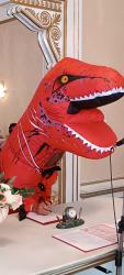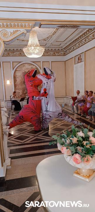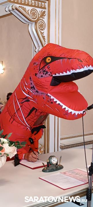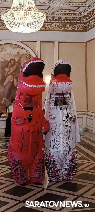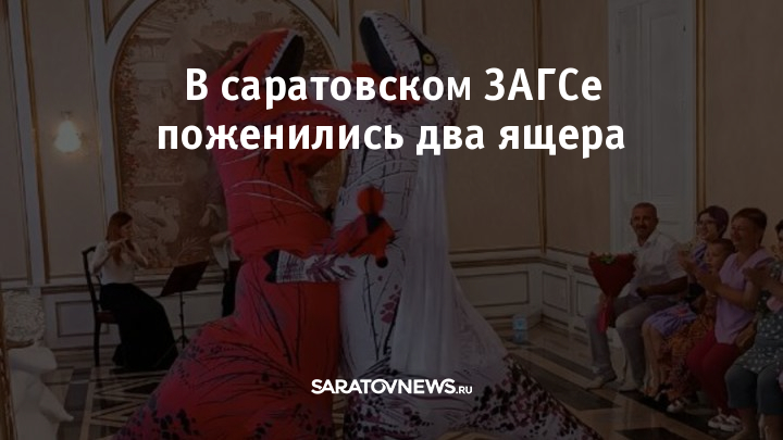 В среду, 16 августа, во Дворец бракосочетаний пришла необычная пара. Молодые нарядились в костюмы ящеров, красный и белый. Можно предположить, что под белым скрывалась невеста.