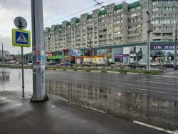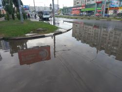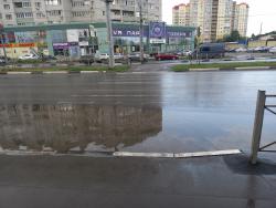 После вчерашнего вечернего дождя в Энгельсе «утонула» улица Тельмана возле автомобильного кольца (напротив дома №23).