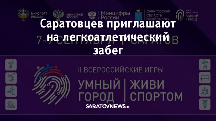 В Саратове стартовал старт регитсрации на легкоатлетический забег в рамках II Всероссийских игр «Умный город. Живи спортом». Мероприятие состоится в 9.00 9 сентября.