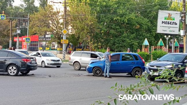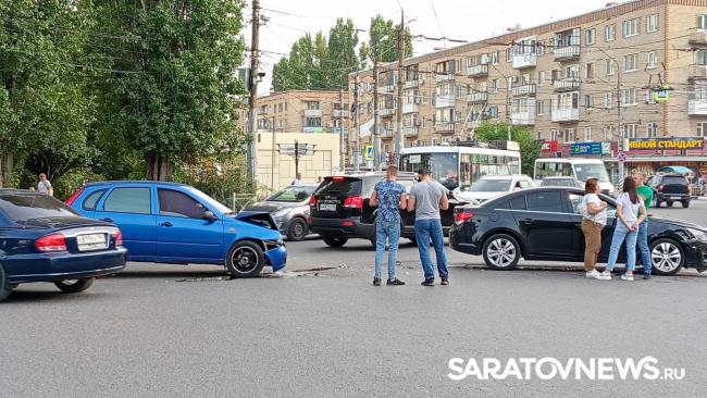 Несколько минут назад в Энгельсе на проспекте Фридриха Энгельса и Строителей столкнулись три легковых автомобиля. По словам очевидцев, сильно пострадала "Лада". Машины перекрыли одну из полос движения, скапливается пробка.