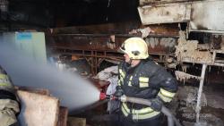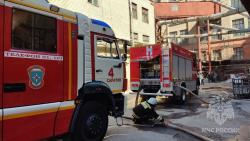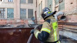 Горевшее здание находилось вплотную к Полиграфическому комбинату. Пожар произошел в кирпичном помещении. Выгорело 40 квадратных метров.