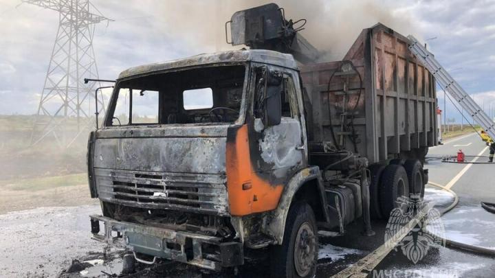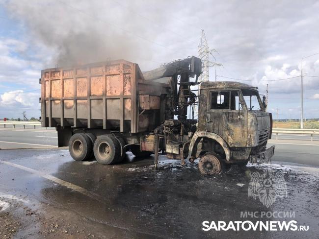 Примерно два часа назад в Гагаринском районе Саратова произошел пожар. На Саратовской кольцевой автодороге, недалеко от поворота на поселок Дубки, горел грузовик "КамАЗ". О происшествии сообщили в региональном ГУ МЧС.