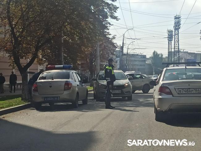 Автомобилисты отмечают, что участники ДТП блокировали полосу в сторону улицы Кутякова. На улице Аткарской работает регулировщик движения транспорта.