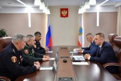 21 сентября губернатор Роман Бусаргин провел встречу с командующим Приволжским округом войск национальной гвардии Российской Федерации генерал-лейтенантом Сергеем Просяником, который представил нового руководителя управления Федеральной службы войск национальной гвардии РФ по Саратовской области полковника полиции Геннадия Юдина.