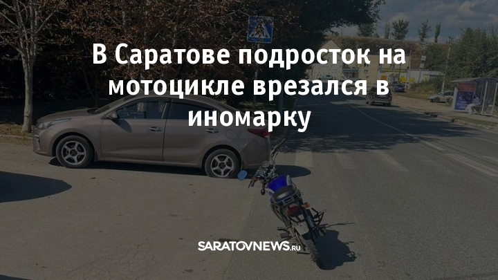 В четверг, 21 сентября в Заводском районе Саратова произошло ДТП с несовершеннолетним. Напротив дома № 5а на ул. Химическая 15-летний мальчик на мотоцикле столкнулся с автомобилем Kia Rio. Иномаркой управлял 42-летний водитель.