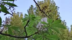 Горожане, прогуливаясь в сквере "Заводской" в выходные, увидели цветущий каштан. Белые свечки были видны только на нижних ветвях, там же выделялись на фоне пожелтевшей листвы и молодые зеленые листья. В остальном же каштан не отличался от своих многочисленных сородичей скрученными ржавого цвета листьями.