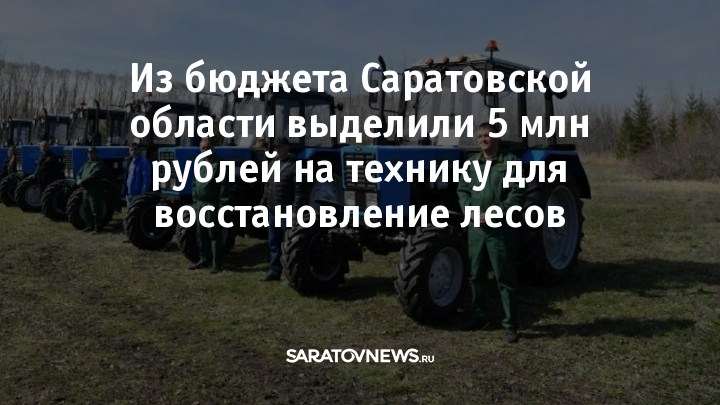 В Саратовской области продолжаются лесовосстановительные работы в рамках нацпроекта «Экология», инициированного Президентом РФ Владимиром Путиным. Для восстановления лесов в регионе закупили различную технику: трактора, опрыскиватели и культиваторы.